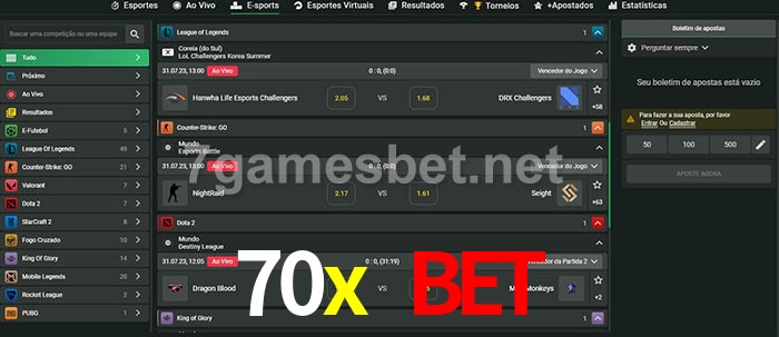O 70x bet oferece uma grande seleção de opções de apostas em e-sports com probabilidades competitivas